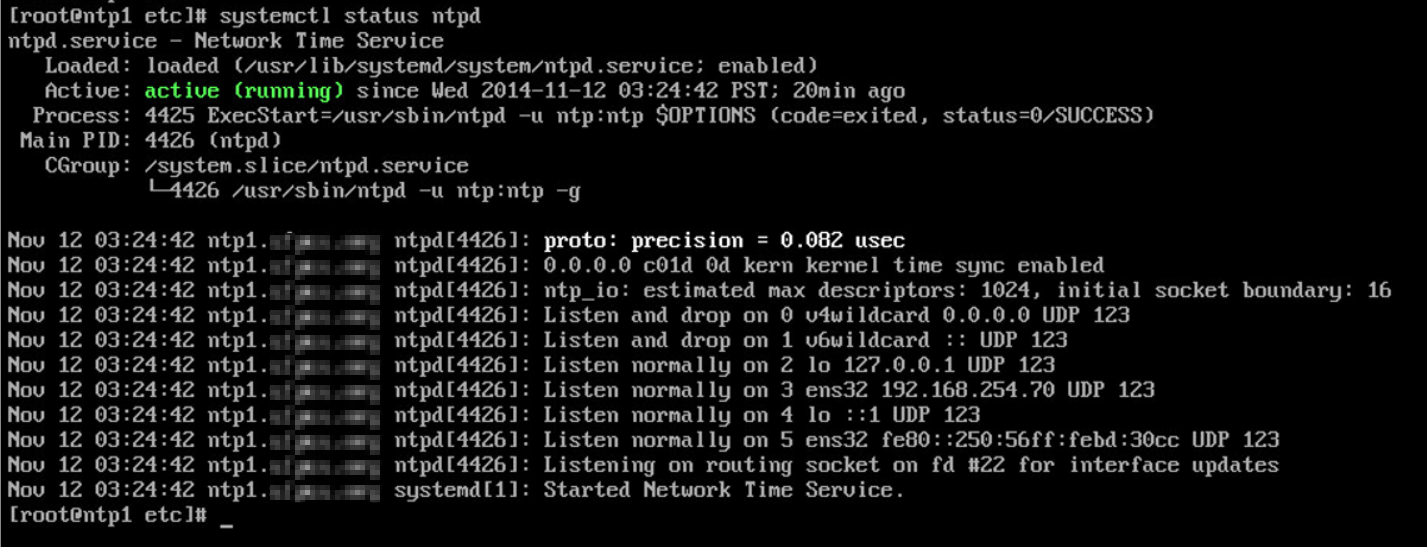 运行“systemctl status ntpd”以确认服务处于活动状态(正在运行)
