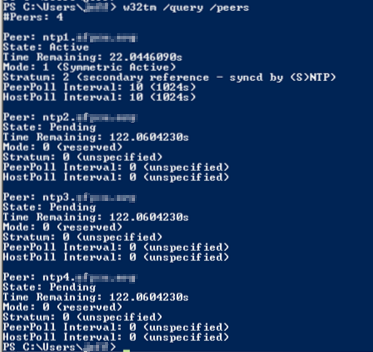 5. 运行 w32tm /query /peers 以确认对等体状态为活动。