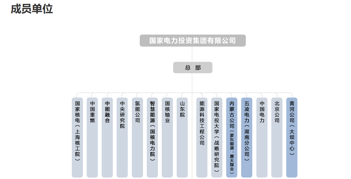 国家电力投资集团有限公司(简称“国家电投”)是中央直接管理的特大型国有重要骨干企业,成立于2015年7月,由原中国电力投资集团公司与国家核电技术有限公司重组组建。国家电投是我国五大发电集团之一,是全球最大的光伏发电企业,2021年在世界500强企业中位列293位,业务范围覆盖46个国家和地区。国家电投现有员工总数13万人,拥有62家二级单位,其中5家A股上市公司、1家香港红筹股公司和2家新三板挂牌交易公司。国家电投肩负保障国家能源安全的重要使命,负责牵头实施“大型先进压水堆核电站”“重型燃气轮机”两个国家科技重大专项,是“能源工业互联网”平台建设任务的主责单位,也是国务院国资委确定的国有资本投资公司试点企业。