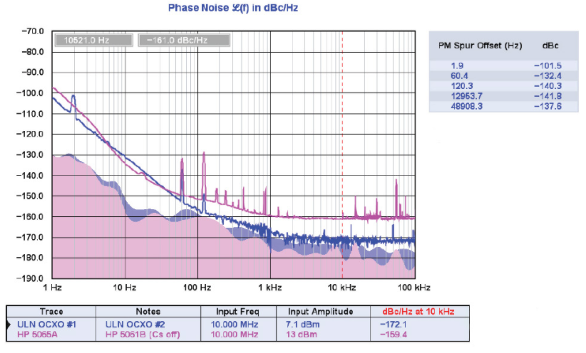 ● PM噪声的互相关测试偏移量为:1Hz-100kHz