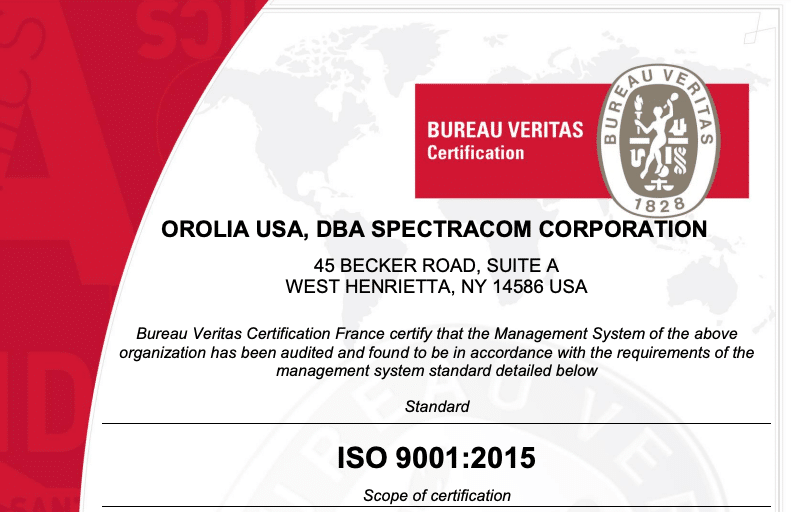 Quality Assurance Management represents Orolia’s commitment to delivering the best quality products and services to our customers, and ensuring that our employees conduct their work in compliance with internationally recognized quality processes and standards. Please see the latest quality assurance information below for our key production facilities worldwide.